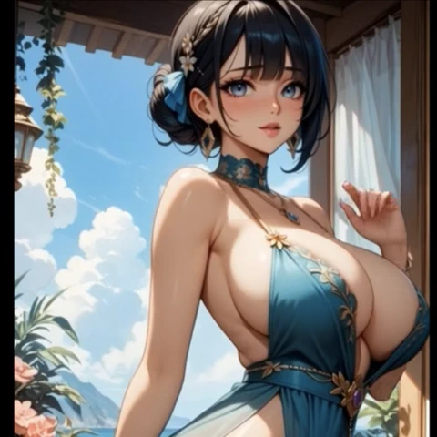 Yapay zekalı güzellik, büyük göğüsler, üniforma, kaygan areola, büyük meme uçları